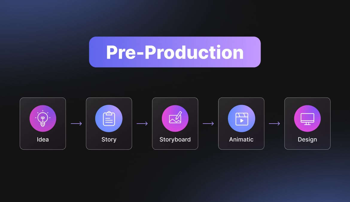 Make sure that you have a solid pre-production process in place, which doesn’t hop over important planning, and doesn’t skip right into design and animation phases.