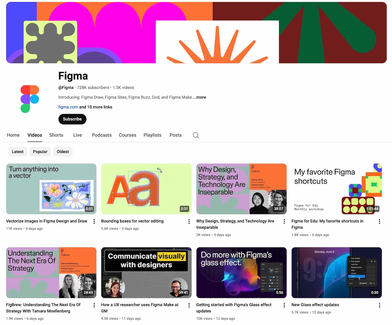 In addition to official videos, Figma benefits from a large volume of community-created content that supports education and adoption across YouTube and other platforms.
